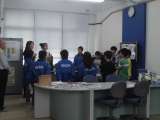 最終の社内会議の様子です。感想を話し合ったり,ボランティアの方々から1日を振り...