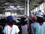 牧場体験の最後に牛乳をいただきました。「生クリームみたい。」「濃くて美味しい。...