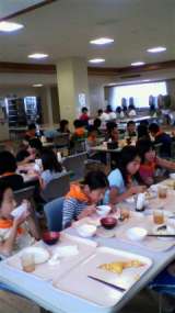 4日目の朝食の様子です。ご飯のおかわりを沢山して元気いっぱいです。