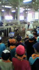 牧場体験で,搾りたての牛乳をいただきました。いつもの味とは,少し違うようですね。