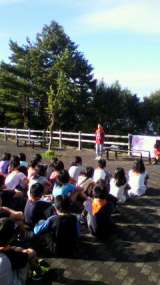 昨夜は,キャンプファイヤーをみんなで楽しんだようです。そして,最終日の朝のつどい...