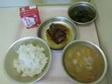 8月27日(木)の献立は, ・麦ごはん ・牛乳 ・さんまのかわり煮 ・ほうれん...