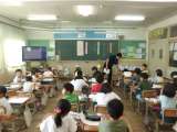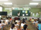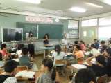 外国語活動の様子です。 大淀中学校の先生も来ていただいています。