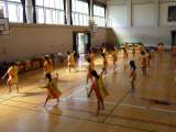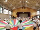 運動会の練習です。 体育館で,バルーンの練習をしています。
