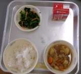 今日は3学期の給食のスタートの日です。献立は、牛乳、ごはん、ほうれんそうのいため...