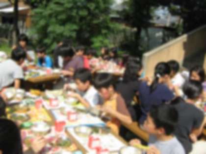 2組では子どもたちの要望により,今日はかまどランドで給食を食べました。快晴のため,今日は気持ちよく食べられるだろうと,朝から張り切っていたのですが…良いお天気すぎて,とても暑かったです…。「行きたい!」と言った子どもたちも少々後悔していた様子。でもいつもとは違う環境で楽しかったかな?もう少し涼しくなってくるともっと気持ち良いでしょうね。