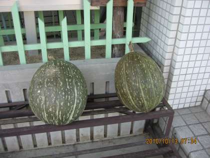 おはようございます。少し大きなカボチャが手に入りました。管理用務員さんにハロウィンの飾りを作ってもらいます。