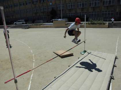 バーを跳び越えることができるよう,歩幅の調整や踏切の工夫などをしています。