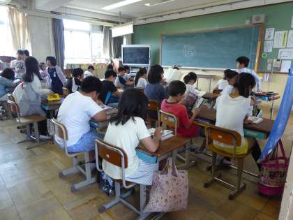 子どもたちは,毎朝伏見図書館からお貸りした本や学校図書館の本をよく読んでいました。