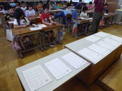 配膳台の上や後ろのロッカーの上,廊下の引出しなど,教室によってプリントの置き場所は様々です。次々とプリントを選び,黙々とがんばっていました。