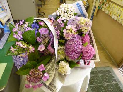 梅雨のじめじめした時節ですが,あじさいのお花のおかげで爽やかに華やかになっています。