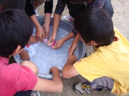 本当ならもっと暑い時期にしておくべきだった洗濯実習を今日実施した6年1組。水もさほど冷たくなかったので苦痛を感じずにできました。ただ・・・せっかく洗ったハンカチを土の上に落とす児童が約3名・・・。こんなことも貴重な経験となるのでしょう・・・ということにしておきましょう。