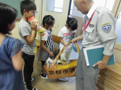 今日は,淀消防出張所の方にお越しいただき,日頃の活動の様子やをお聞きしたり,火事の際に着用している装備を着させていただくなど,貴重な体験をさせていただきました!