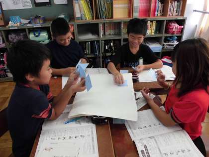 夏休みのエコライフについてグループで話し合い、最後には、班ごとにこれから取り組んでいきたいエコの目標をたてることができました。