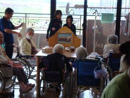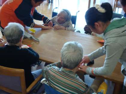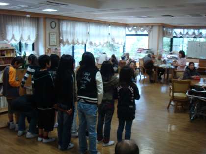 今日1組は総合的な学習の一環で,学校のお向かいにある「淀の里」に行ってきました。3世代家族が少なくなってきている今,おじいさん・おばあさんと触れ合う機会が少なくなってきている子どもたちがどのような行動をするのか,正直心配していました。しかし,いざお話を始めたり,一緒に折り紙をしたりしていくうちにすっかり緊張もほぐれ,楽しそうな顔をしていました。おじいさん・おばあさんも児童と楽しそうにしていたのでホッとしました。