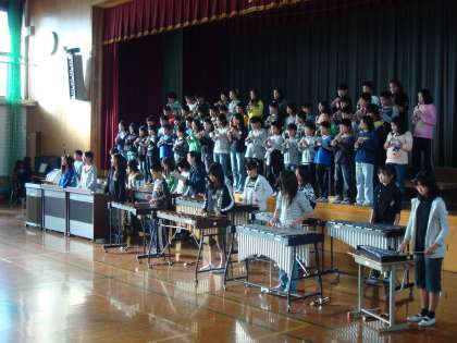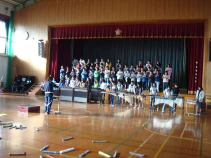 体育館練習第2回。合奏曲「ボレロ」を中心に練習しました。音楽会まであと10日。最終調整に入りました。