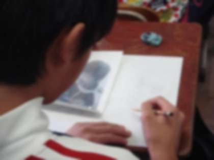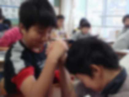 図工では木版画が始まっています。6年生の題材は「腕相撲している自分」です。実際に自分たちで腕相撲をして,今日は下がきをしました。表情や腕の筋肉などに気をつけて,臨場感あふれる下絵が出来上がってきています。これから板に写し,彫刻刀で掘り進めていきます。