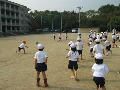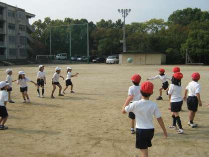 今日の体育は,塗装作業をされていて鉄棒が使えないため,ボール遊びをしました。