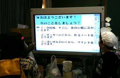 ICT機器を電光掲示板として使っています。朝,登校後,掲示内容をみて,活動をはじめます。これも,ICT機器の有効活用ですね。★彡!