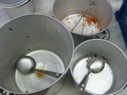 今週は美豆小学校の給食週間です。給食週間は,普段何気なく食べている「給食」や「食べる」ことについて,クラスや家庭でも考えてみようという週間です。今日は,給食感謝の献立です。以前にもお話しましたように,京都市では手作り給食をすすめています。今日のヒレカツも給食室で1つずつ 家庭と同じように衣を付けて揚げています。1人ヒレカツ3枚としても1300枚を揚げました。カラッと揚がって,とっても好評でした。教室の食缶もカラッポです。今日の献立「麦ごはん・牛乳・ヒレカツ(ソース付)・ソティ・みそ汁」