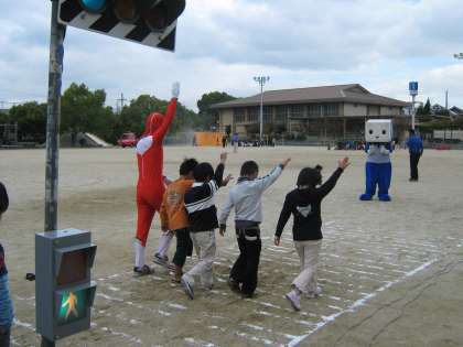 安全の集いでは,日ごろお世話になっている見守り隊の方々へ感謝の気持ちをこめて作文を読んだり,プレゼントを渡したりしました。その後は佐川急便の方々による交通安全教室を受け,赤レンジャーや黄レンジャーと一緒に交通安全について勉強しました!