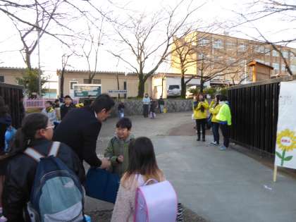 冬休み明けの初日に,PTAの方々が声かけ運動をしてくださいました。