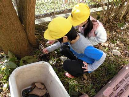 ビオトープ学習では,冬籠りの生き物を探したり,野鳥を観察したりしました。