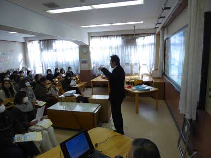 2月5日(月)に半日入学と保護者説明会を実施しました。来年度のかわいい一年生が,絵を書いたり,歌を歌ったり,折紙遊びをしたりして小学校体験をしました。また,保護者の方々には入学準備に向けた説明会を実施しました。誘導係の4年生に手を引かれ緊張気味に教室に向かった新1年生でしたが,体験授業後には笑顔いっぱいに帰ってきました。