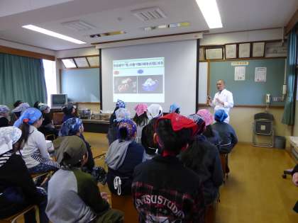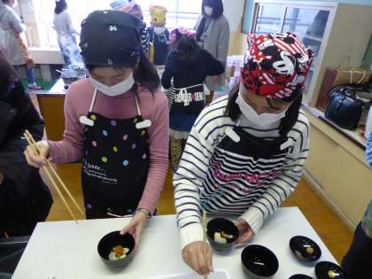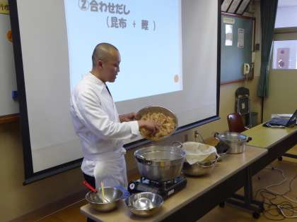 2月6日(火)日本料理アカデミーのご協力を得て「辰巳屋」八代目若主人 左 聡一郎様をお招きし,日本料理に学ぶ食育カリキュラムモデル授業を実施し,「おもてなしの心」を中心とする食の学習をしていただきました。子どもたちは,この学習を通して食に対する興味関心と高めると共に,五感を働かせて食する事の大切さ,さらに,伝承文化の継承発展を学ぶことができました。