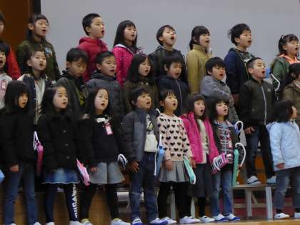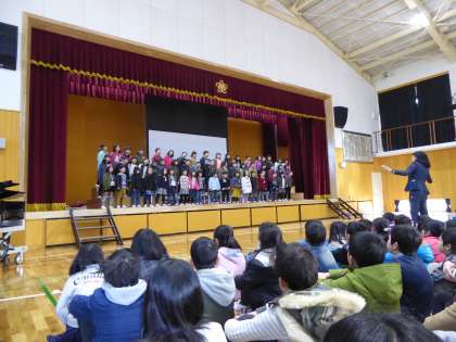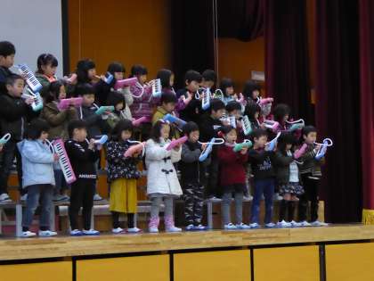 歌ったり,せりふを言ったり,演奏したりする1年生の姿に,1年間の大きな成長を感じました。たくさんの保護者に鑑賞していただき,ありがとうございました。
