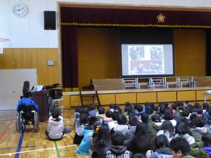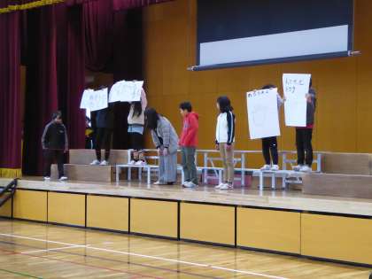 2月7日 児童集会を開催し,3年生の感動体験作文発表会と保健委員会の発表を行いました。3年生は音楽会の取組を通して感じた自分たちの成長や感動を作文で伝えました。また,保健委員は手洗いうがいの正しい仕方を劇を通して伝えました。