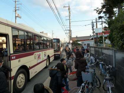 「ただいま〜」「おかえり〜」の声が,バス停に着くたびに響いていました。予定よりも少し早く着くことができました。花背山の家での活動をすべて終わり,無事に帰宅した子どもたちです。