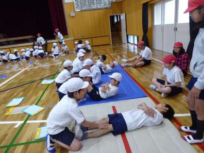 先日,中学年・高学年のお兄さん・お姉さんがスポーツテストをしている