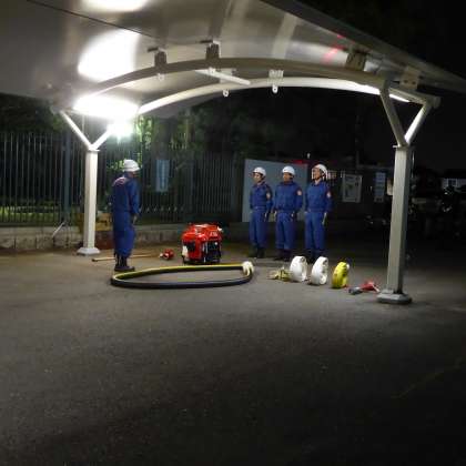 お仕事を終えてからの訓練に多くの方々が参加されました。私たちの安心と安全を守るために,このような訓練をしていただきありがとうございます。