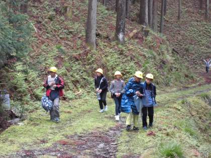 班で仲良くハイキングをしながら,各ポイントで課題をクリアしていきます。