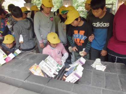 朝のつどいの後は朝食。今日もパックドック作りです。