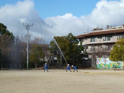 午前10時,雪がちらつく中,淀消防分団の方々による「出初式」が行われました。地域からも30名を超える方々が参列され,団員のきびきびした行動に寒さを忘れて見入っておられました。伏見区では火災件数が減少しています。これもひとえに,消防団の皆さんが,地域でご活躍されているおかげと改めて感謝することができました。