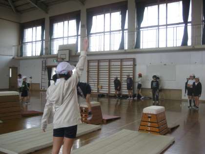 2.終わった後,マットやとび箱がずれていないか見て,手で合図を送る。