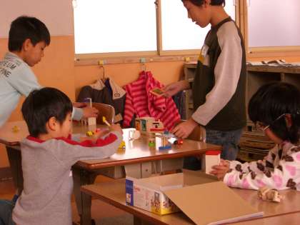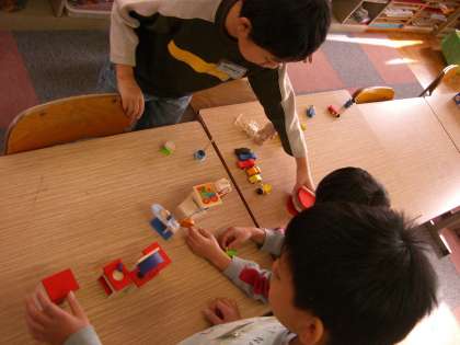 つばさのみんなは,今日も仲良し。もともと教室には,お掃除セットなどの木のおもちゃがあるのですが,新しい年になり,新たに木の人形が5つと,キッチンセットが仲間入りしました!
