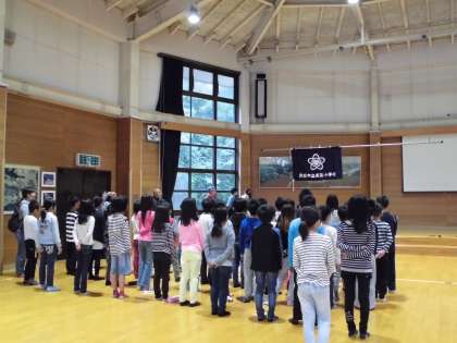 今日の朝の集いは,山ノ内小学校さんと合同で行いました。
