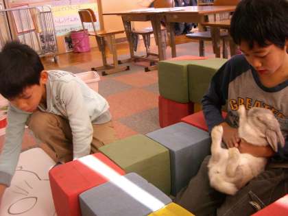 今年は、うさぎ年!・・・ということで、つばさの教室にうさぎの「ホワイトさん」が出張にきてくれました♪