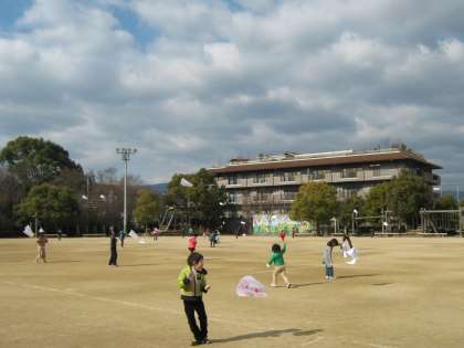 そのあと4時間目に運動場でたこあげ大会をしました。風も程よく,すごく高くまで上げている子もいました!走り回ってあげるせいか糸がからまる子もたくさんいましたが,みんなとっても嬉しそうでした♪