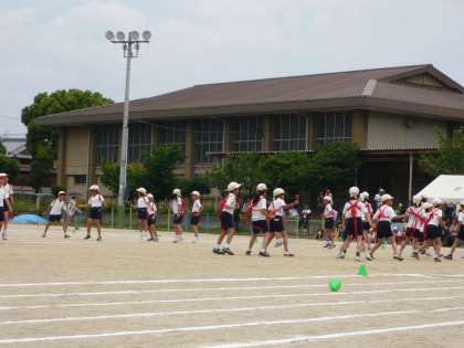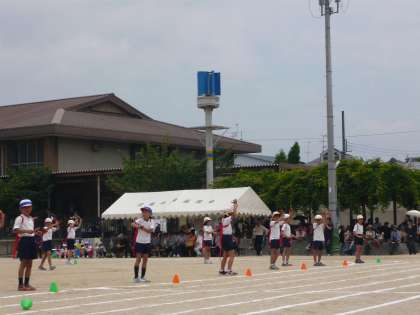 真っ赤なたすきをかけて,音楽に合わせてなるこ踊りをしました。