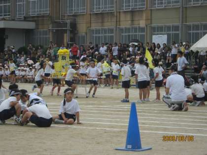 お天気が心配されましたが,無事運動会をおこなうことができました。子ども達は教室で「ワッショイ!ワッショイ!ワッショイ!!」と三回掛け声をかけて気合を入れてから運動場へ出ました。団体競技としては最初の出番でしたが,美豆音頭もしっかり踊れ,おみこしリレーも元気いっぱいに競技することができました。