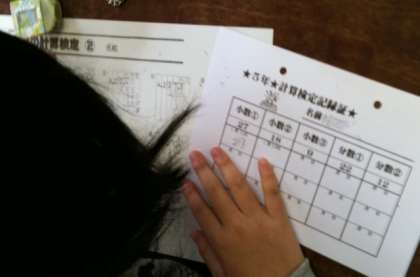 5年生は,小数のかけ算,わり算,分数のたし算,ひき算の計算検定を実施します。