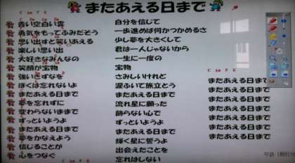 中間マラソンの時にも流れていた親しみある曲なのでどの子もすぐに元気よく歌えるようになりました。みんなで,心から卒業を祝いたいものです。★ミ!