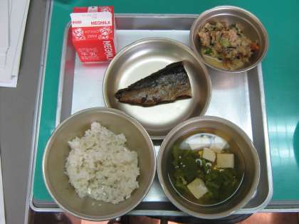 給食室は冷蔵庫!調理前の給食室の室温は4〜8度です。野菜の洗浄も冷たい水なのでとても寒いです。でも,子どもたちに安全で美味しい給食を作るために日々頑張っています。 今日の給食は『麦ごはん・牛乳・にしんの煮つけ・おから・花菜のすまし汁』でした。