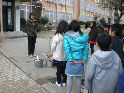 お餅を焼くのに朝から火をおこしてくださった管理用務員さんに,3年生みんなでお礼を言いました。昔の人々の暮らしの大変さを感じた3年生でした。