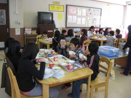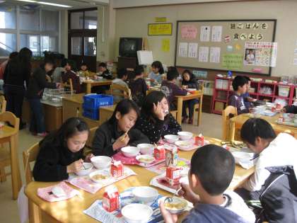 2月21日(月)4校時は平山先生による食の授業で,主食について勉強しました。日本の人々が一年間に食べるお米の量が50年前のおよそ2分の1に減っていること。主食として毎日食べているご飯やパン・麺類が体を動かしたり脳をはたらかせたりするためのエネルギーとして使われていること。夜眠っている間にも脳は働いていてエネルギーを使っているから朝食をとることが大事だということなどを学びました。その後ランチルームで楽しく給食時間を過ごしました。