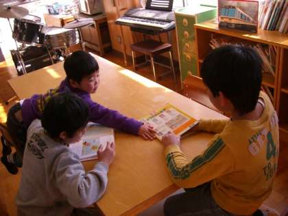 ご飯がよくすすみ・・・残った時間はなかよく読書タイム♪